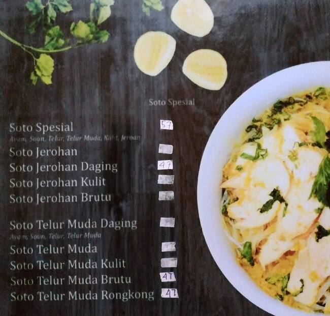 Menu At Soto Ambengan Pak Sadi Restaurant Jakarta Jl Wolter Monginsidi No 28